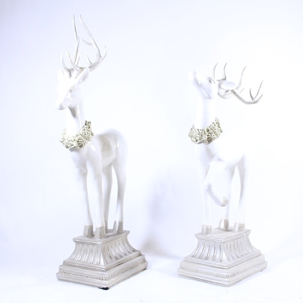 Ivory Deer on a Pedestal set of 2