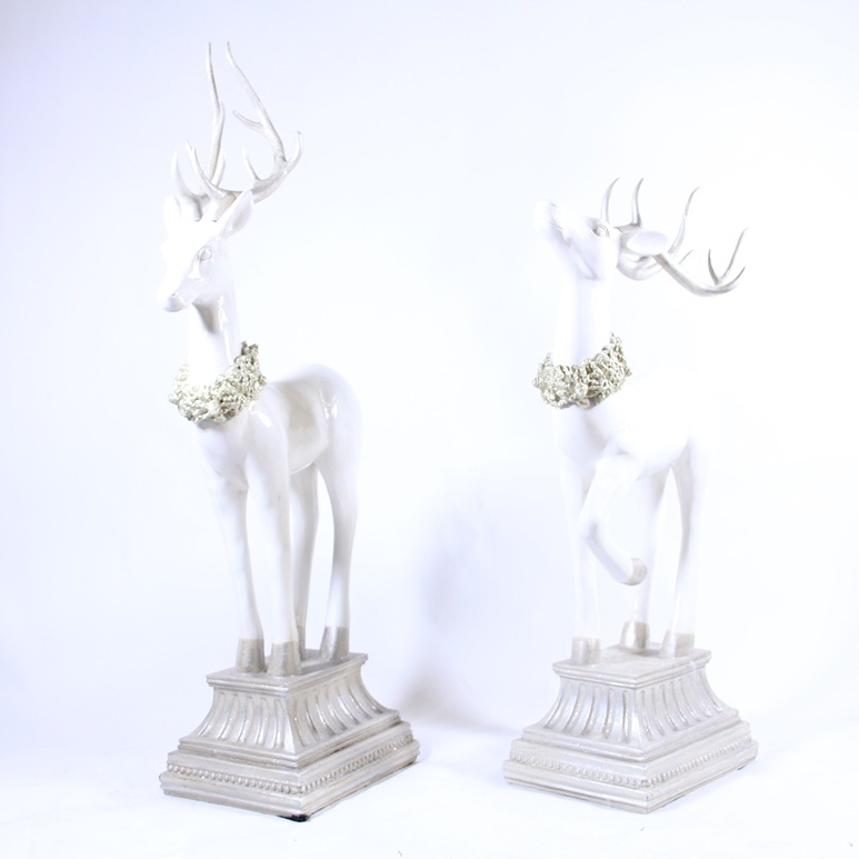2 Sets of 2 Ivory Reindeer on a Pedestal